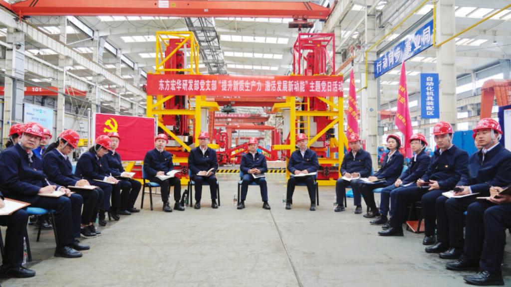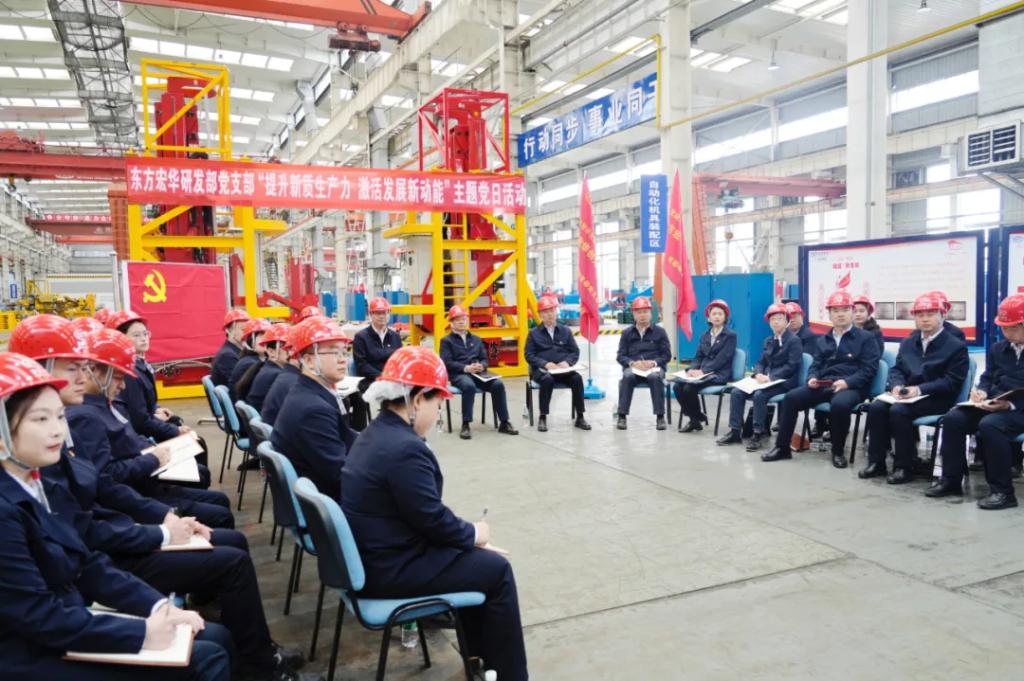 本网讯 4月9日,人生就是搏集团党组书记、董事长俞培根参加联系基层党支部——东方宏华研发部党支部“提升新质生产力,激活发展新动能”主题党日活动。研发部党支部党员代表、青年代表和党外人士代表参加活动。活动采取沉浸式与互动式相结合的方式,在东方宏华零部件车间现场开展。